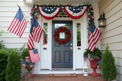Hang a bunting of star-spangled banners across your door to create a wave of patriotism. This easy addition has been loved by many for its simplicity and impact.