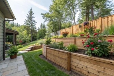 Create levels in your garden with a multi-tiered 6×6 retaining wall. I’ve found this design excellent for maximizing planting space and adding depth to your landscape.