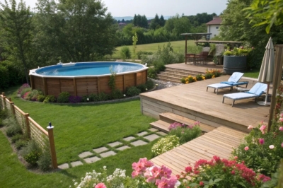 - Non-Slip Rubber Decking: Ensure reliable traction and durability with non-slip rubber decking around your above-ground pool.
