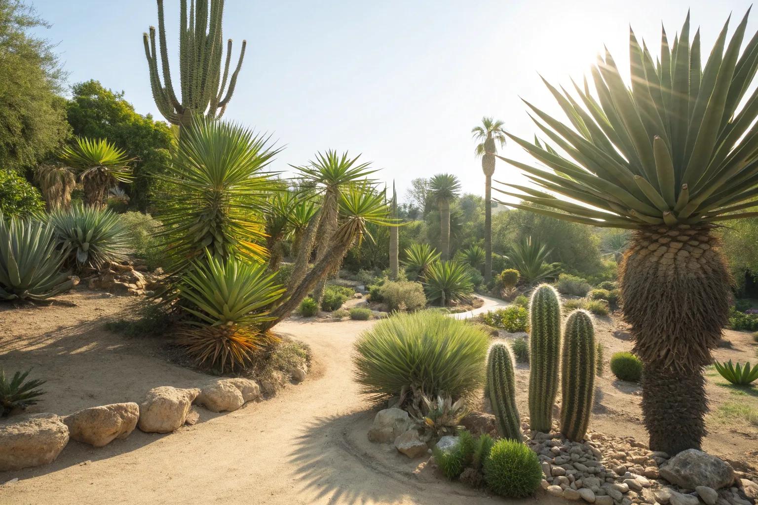 Line your walkways with agaves for a structured border that’s both functional and beautiful. They naturally guide your guests along the path while adding a touch of elegance.