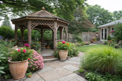 For a stable and lush appearance, evergreen shrubs provide year-round greenery. Their consistent beauty makes them a staple in my gazebo projects.