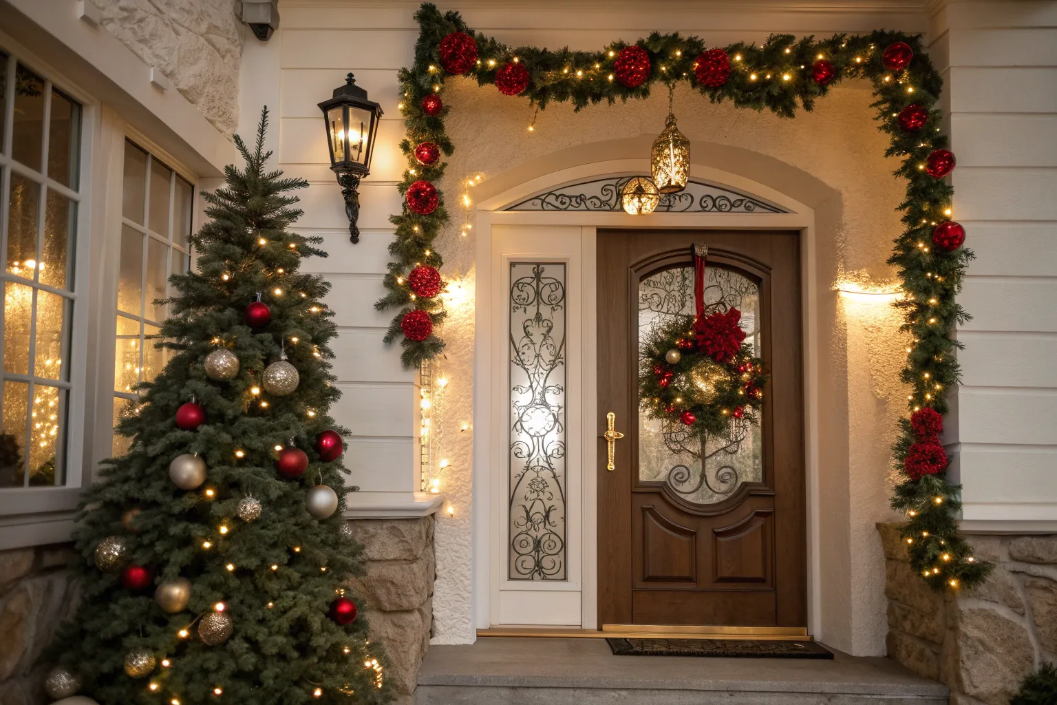 - Christmas Wreath with Red and Green Accents: Add a traditional touch to your door with a Christmas wreath featuring red and green accents.
