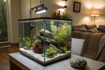 Start simple with a minimalist tank, focusing on clean lines and minimal decoration. This setup not only saves space but also enhances the beauty of each element, making it a perfect starting point for beginners.