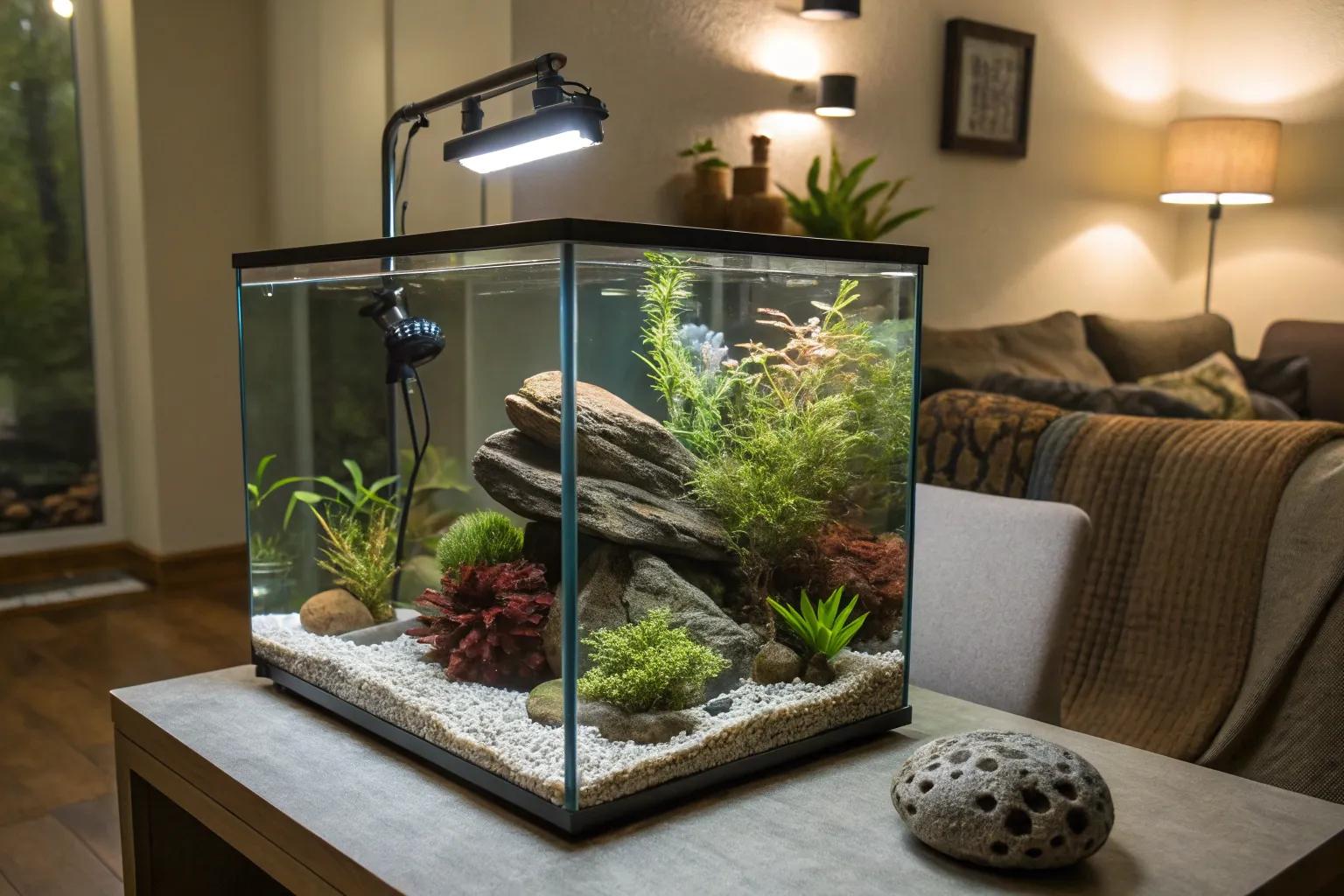 Use lighting strategically to highlight your aquascape’s best features. Proper lighting can transform the mood of your aquarium, making it a stunning centerpiece in your room.