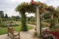 - Wooden Arbor Trellis: Enhance your garden’s charm with a classic wooden arbor trellis, ideal for climbing roses.