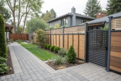 Add some intrigue with patterned metal panels that double as art pieces. Clients love how these fences serve as both functional and decorative elements.