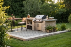 A grill area isn’t complete without a comfortable seating arrangement for your family and friends to relax and enjoy the meal. In my projects, I always recommend weather-resistant cushions and a sturdy table for the ultimate lounging experience.