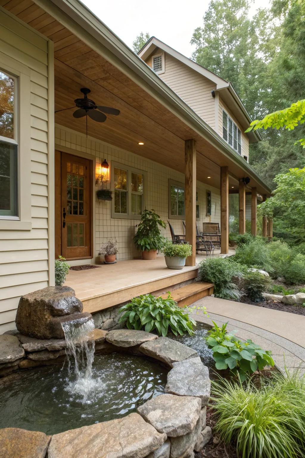 Introducing a water feature like a small fountain can add a serene atmosphere to your porch. The gentle sound of water is incredibly calming.