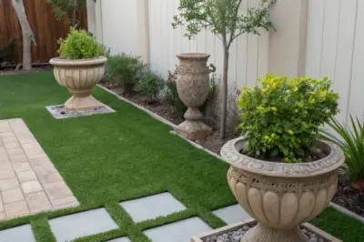 Add decorative elements like planters and small plants to enhance the space around your grass and pavers. These touches bring life and color, making any garden feel more inviting.