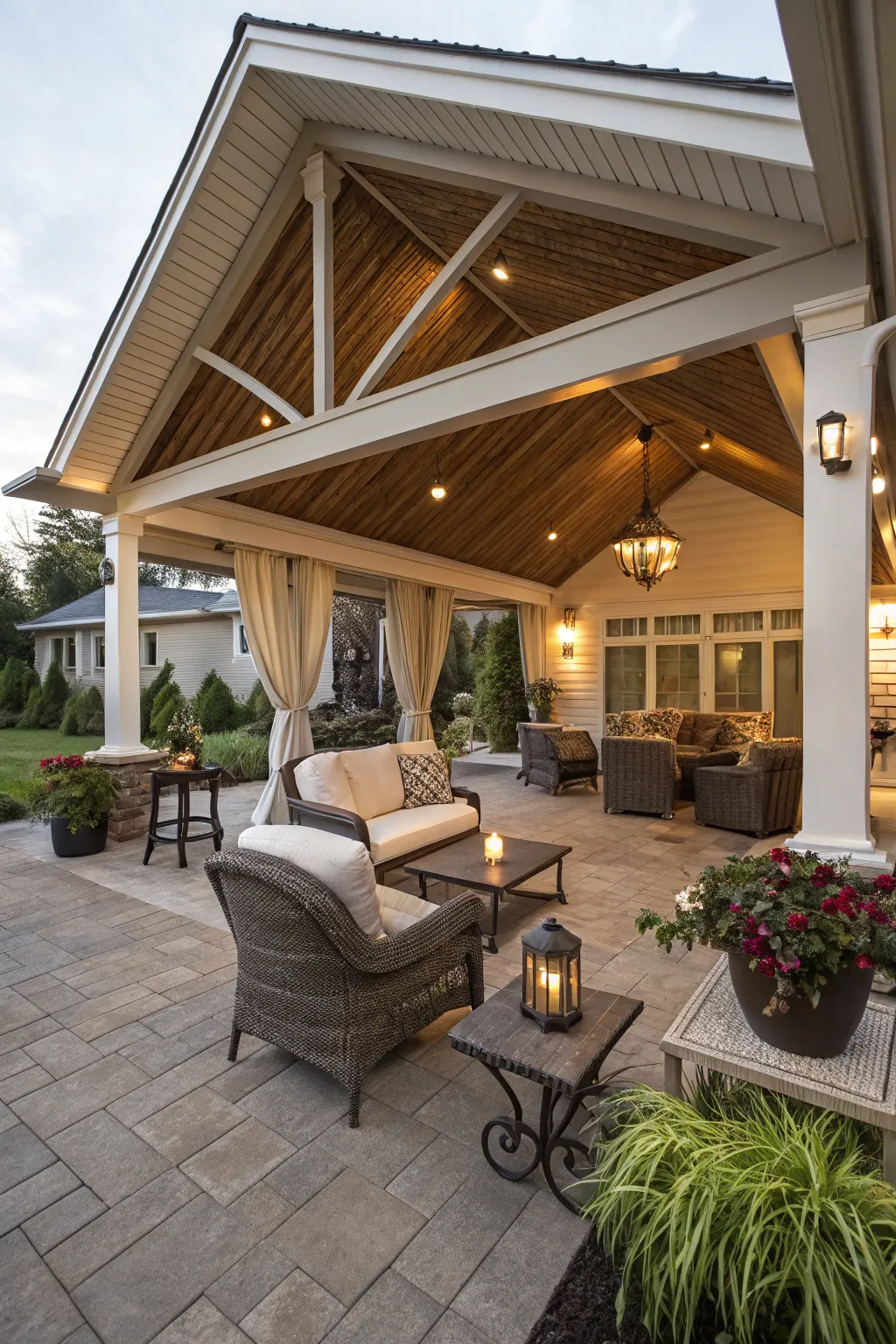 Opt for a gabled roof design to give your patio an architectural edge. It adds height and a sense of grandeur, making your outdoor space feel even more expansive.