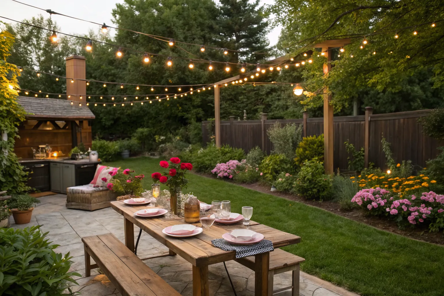 Enhance your evening with the warm glow of string lights draped across the yard. They create a magical atmosphere that always wows my guests.