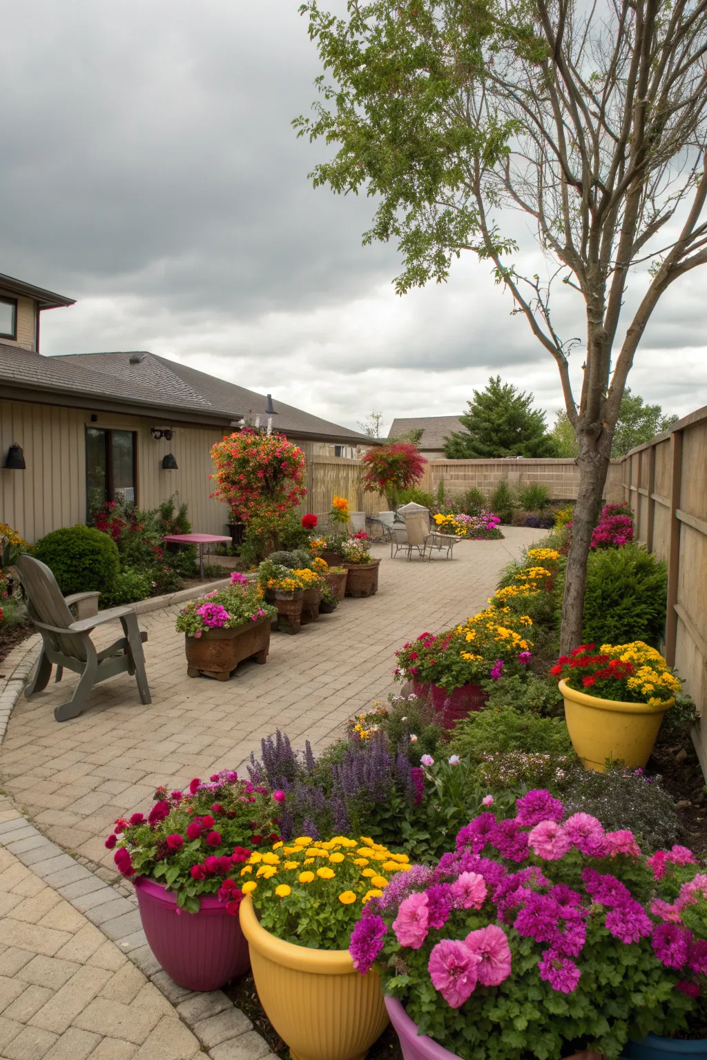 Bright, colorful planters can elevate the mood of your courtyard. They add pops of color and can be moved around to refresh the space.