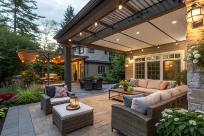 Transform your patio into a versatile outdoor living room with retractable screens. This setup keeps bugs out and allows climate control, perfect for year-round use.