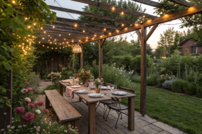 A pergola covered with climbing vines or twinkling lights is a fantastic way to define your dining area. In Austin, I’ve seen many backyards come alive with this simple yet elegant addition.