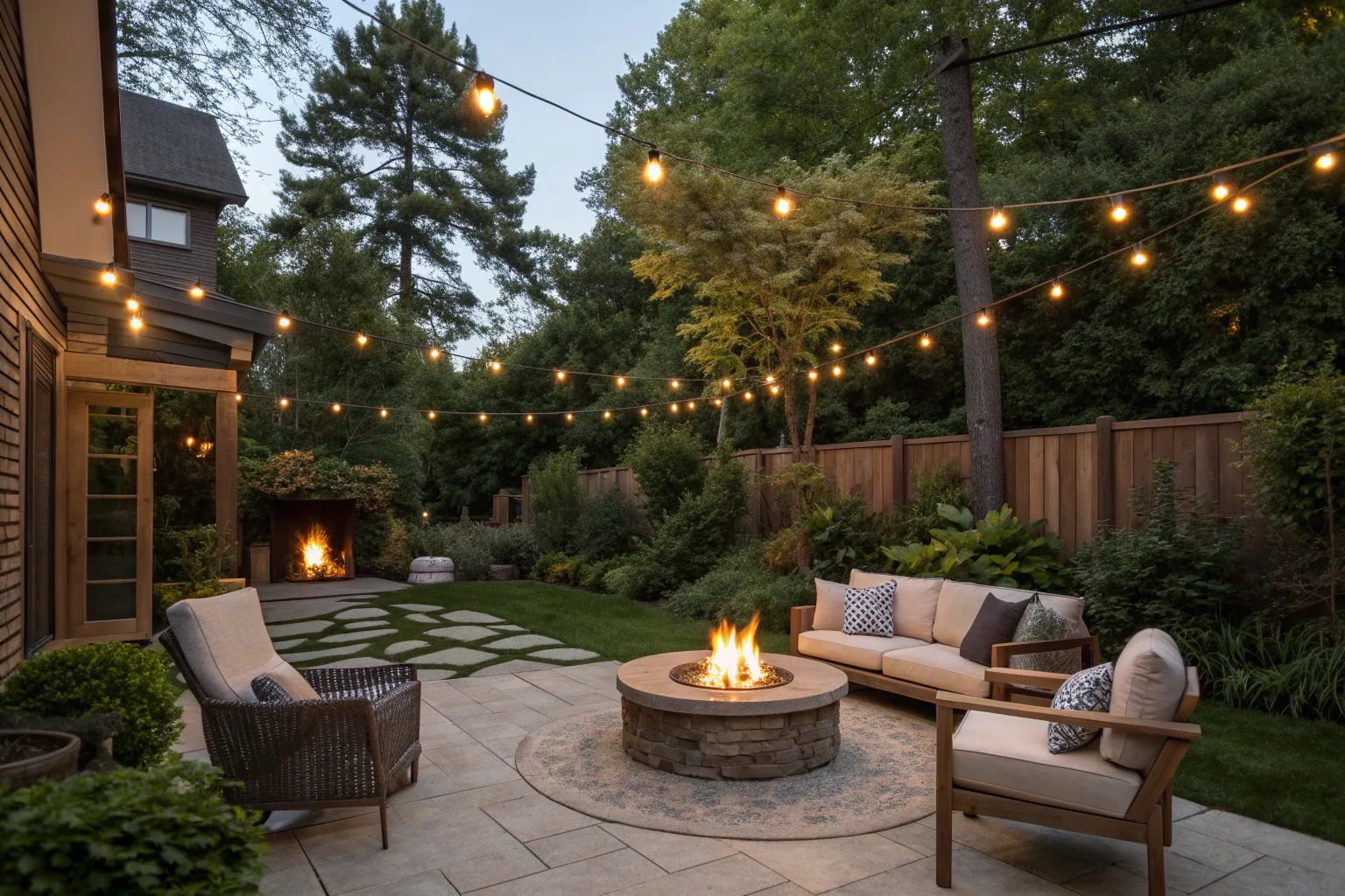 Adding string lights around your fire pit area can create a magical nighttime setting. In my backyard, these lights twinkle like stars, adding a whimsical charm to evening gatherings.