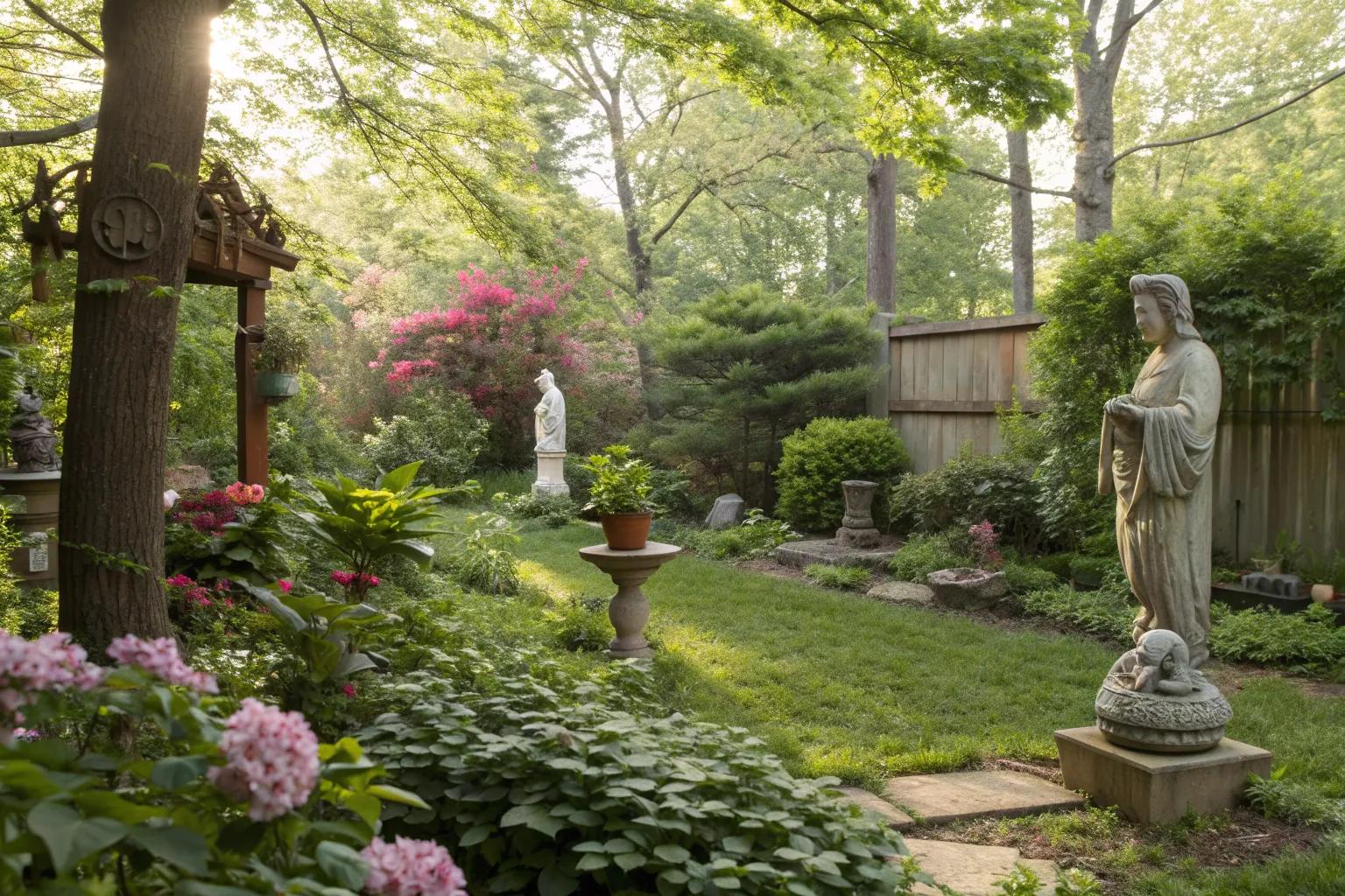 Incorporate a Buddha statue to infuse your garden with an air of peace and cultural richness. It’s a favorite among those looking to create a serene retreat.