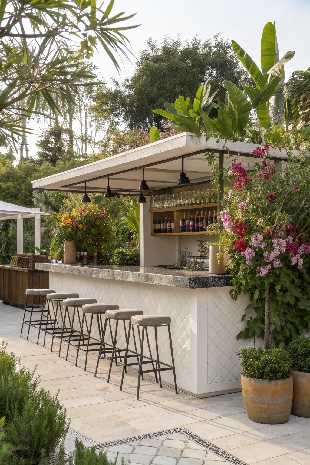An outdoor bar can make your space the go-to spot for socializing. I love setting up bars that are perfect for mixing drinks and enjoying warm evenings with friends.