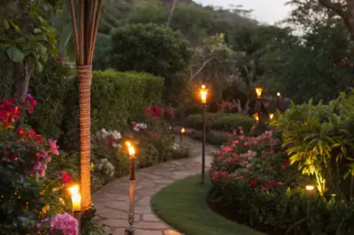 Incorporate torches for a touch of exotic flair in your garden. They provide a warm, flickering glow that complements any outdoor gathering.
