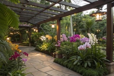 Install integrated lighting for evening orchid viewing. This addition transforms gardens into enchanting spaces, allowing enjoyment of blooms after sunset.