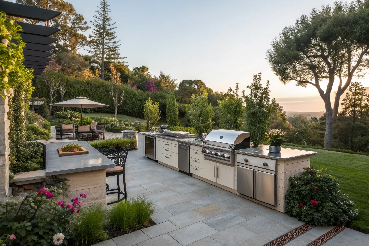 A waterfall countertop isn’t just for indoors anymore. It’s a sleek way to add modern elegance to your outdoor setup.
