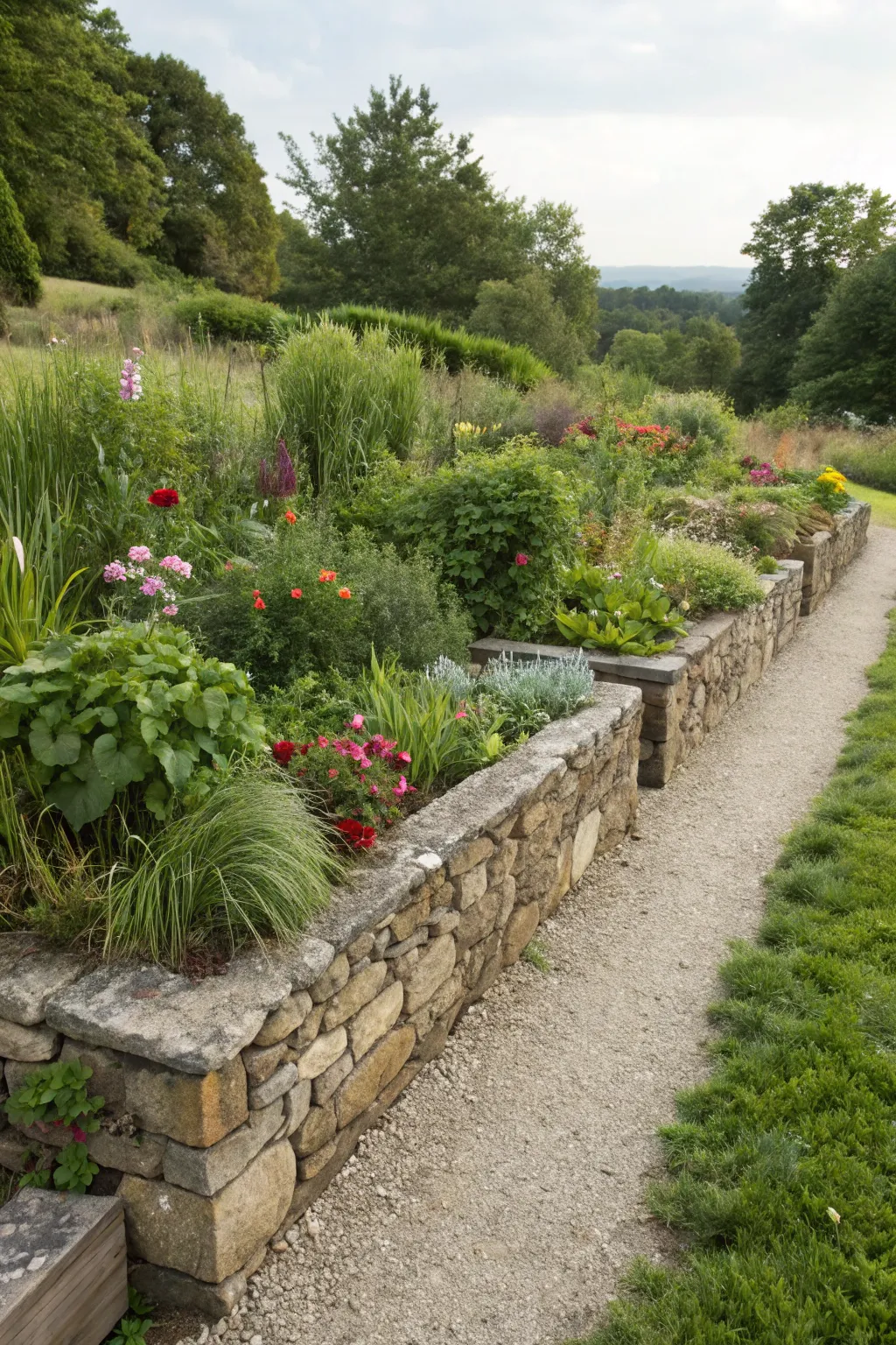 Opt for stone walls for a rustic and durable raised bed option. They might be an investment, but they’re definitely built to last, much like the gardens I’ve designed with long-term durability in mind.