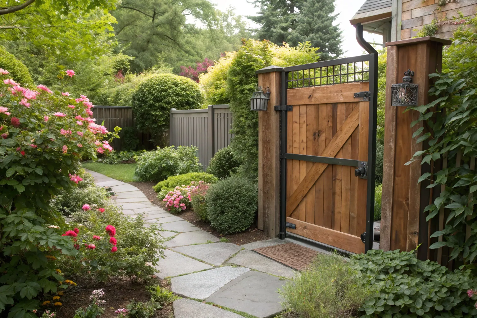 Combine the best of both worlds with a mixed material gate. Mixing wood and metal can create a stunning contrast that’s both practical and stylish.
