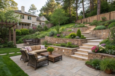 Tiered terraced gardens are perfect for turning a steep slope into a series of mini-gardens. I’ve helped clients create these, and they always love the layered look and extra planting space it provides.