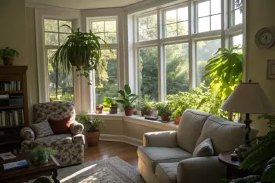 Ferns thrive in the indirect light of a bay window, adding a lush and tranquil vibe. Their feathery fronds create a beautiful texture that enhances any interior.