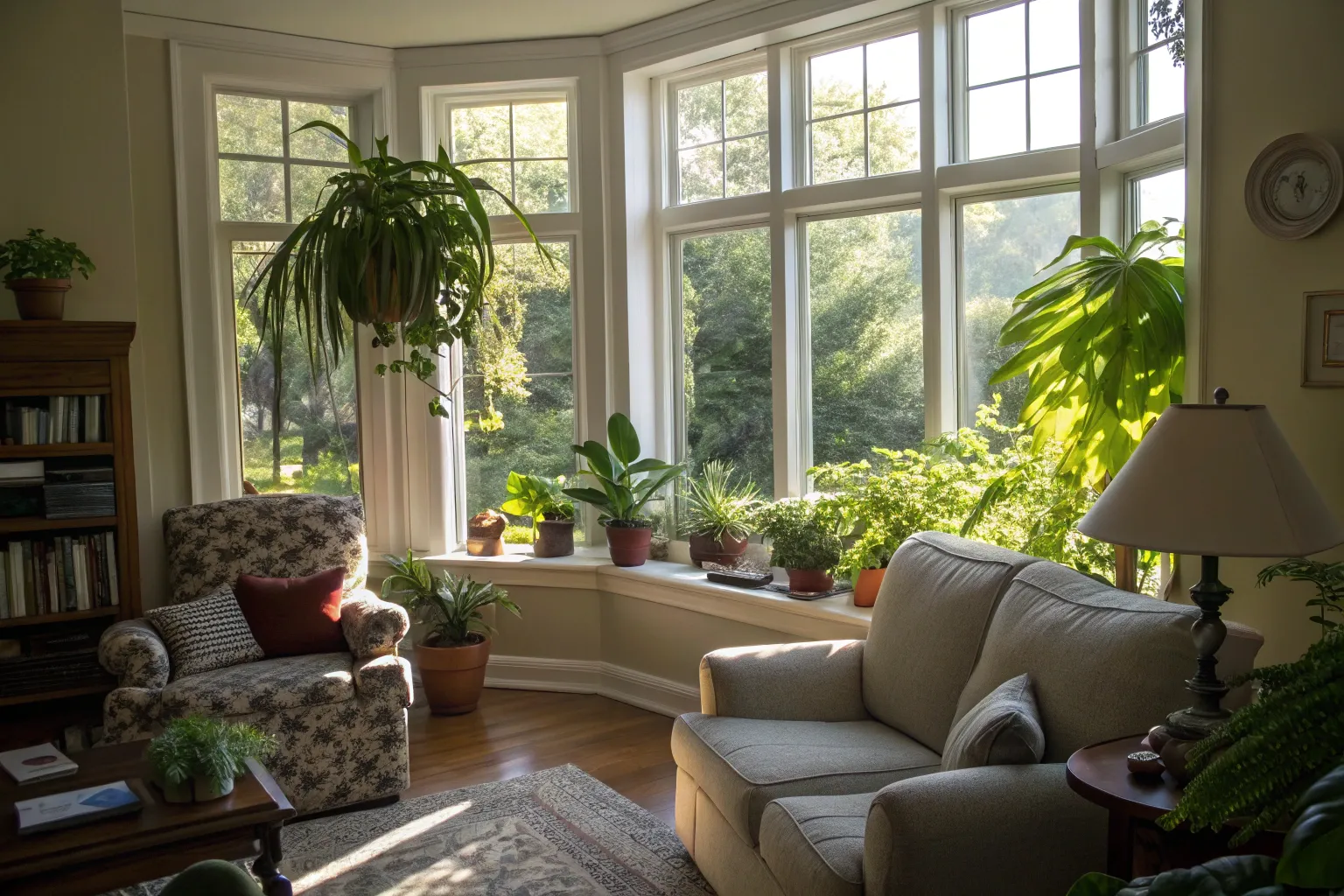 Snake plants are hardy and stylish, making them perfect for a cozy bay window nook. Their upright leaves add an elegant touch while requiring minimal care.