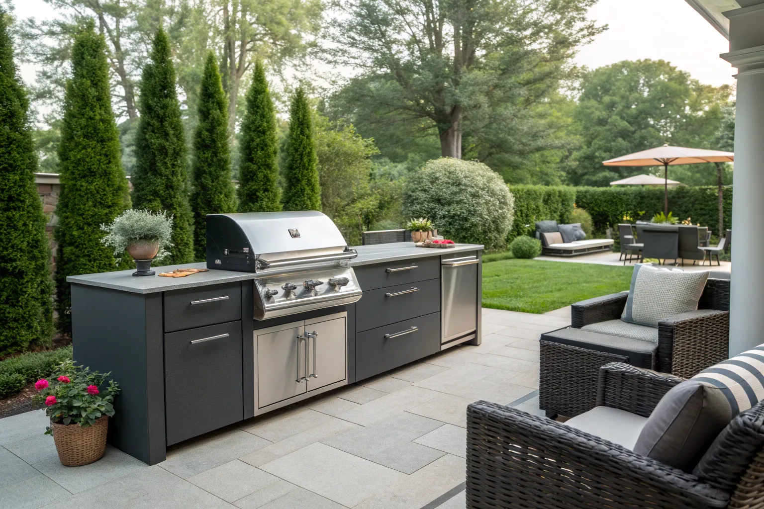 - Weatherproof Outdoor Cabinet: Optimize storage with a weatherproof cabinet to keep your BBQ essentials organized and stylish.