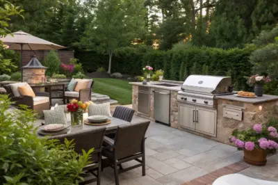 Incorporate a fire pit near your BBQ island for a cozy gathering spot. A client of mine loved the combination—it was the perfect way to grill and chill.