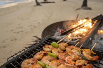 Fresh seafood on the grill is a beach BBQ must. Try grilling lobster tails, shrimp, and scallops with a squeeze of lemon for a taste of the ocean right on your plate.