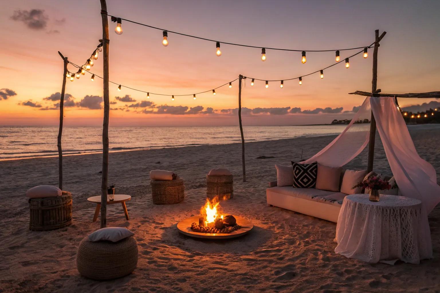 Arrange driftwood logs or beach chairs in a circle around your bonfire to encourage conversation and connection. In my experience, adding plush beach blankets and pillows makes the setting even more inviting.