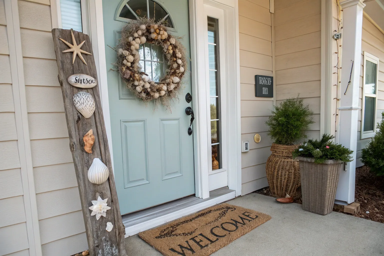 Adorn your door with a seashell wreath for a genuine beachy feel. I love using shells collected from my own beach trips—each one tells a story!