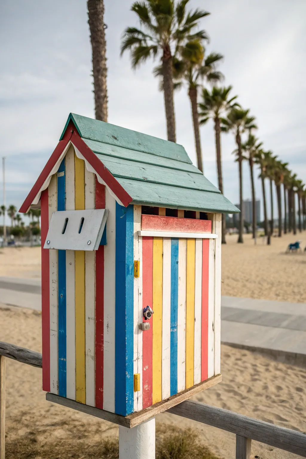 Give your mailbox a makeover with a beach hut design, complete with stripes and a tiny roof. This idea transformed a dull mailbox into a delightful centerpiece.
