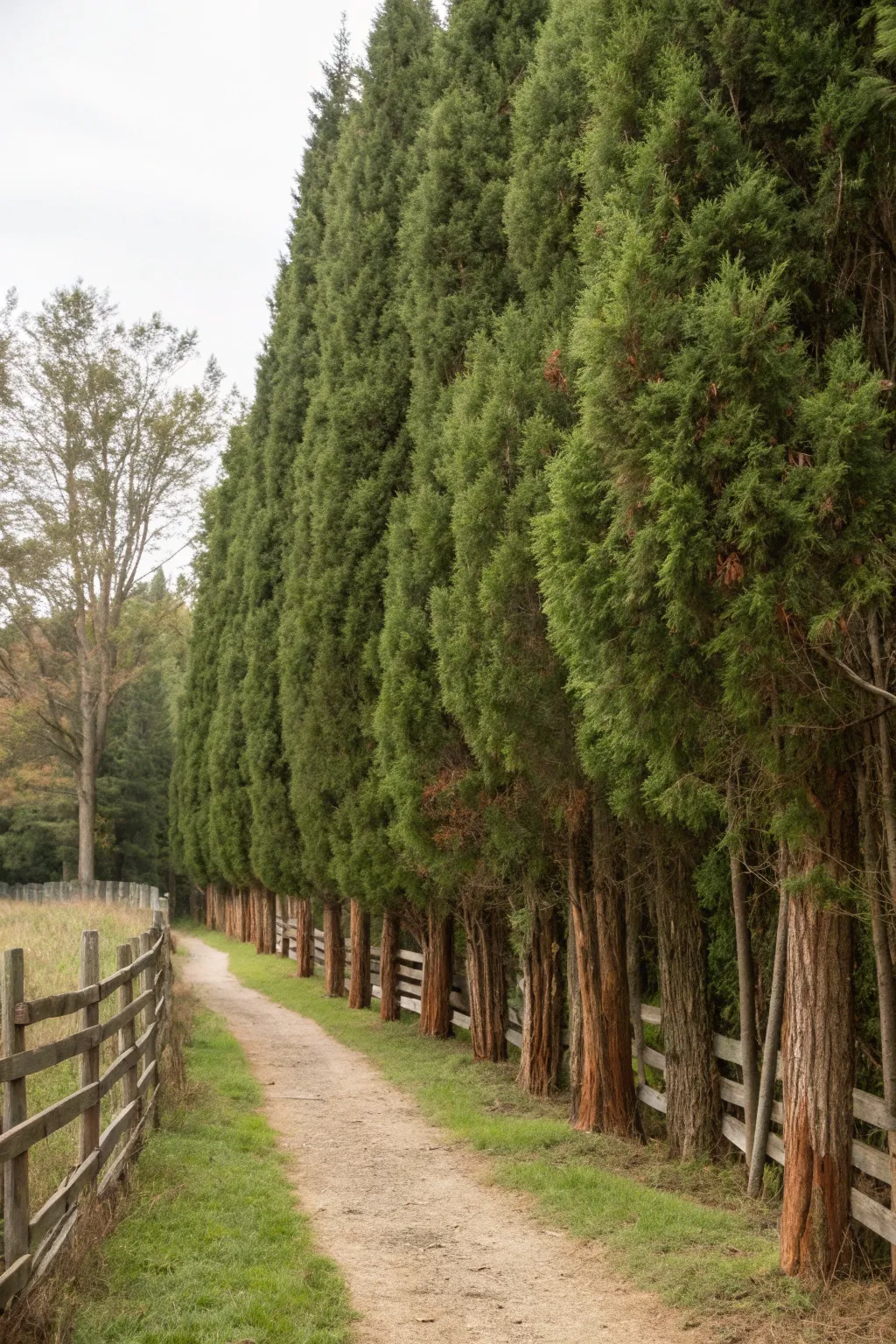 Eastern red cedars are renowned for their fragrant wood and robust privacy capabilities. They’re a go-to for those who want both beauty and functionality.