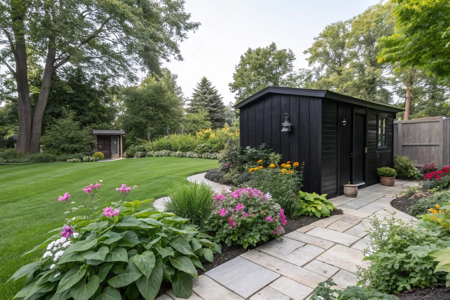 Consider adding a green roof to your black shed for a unique and eco-friendly twist. It’s not only visually stunning but also helps with insulation and rainwater management.