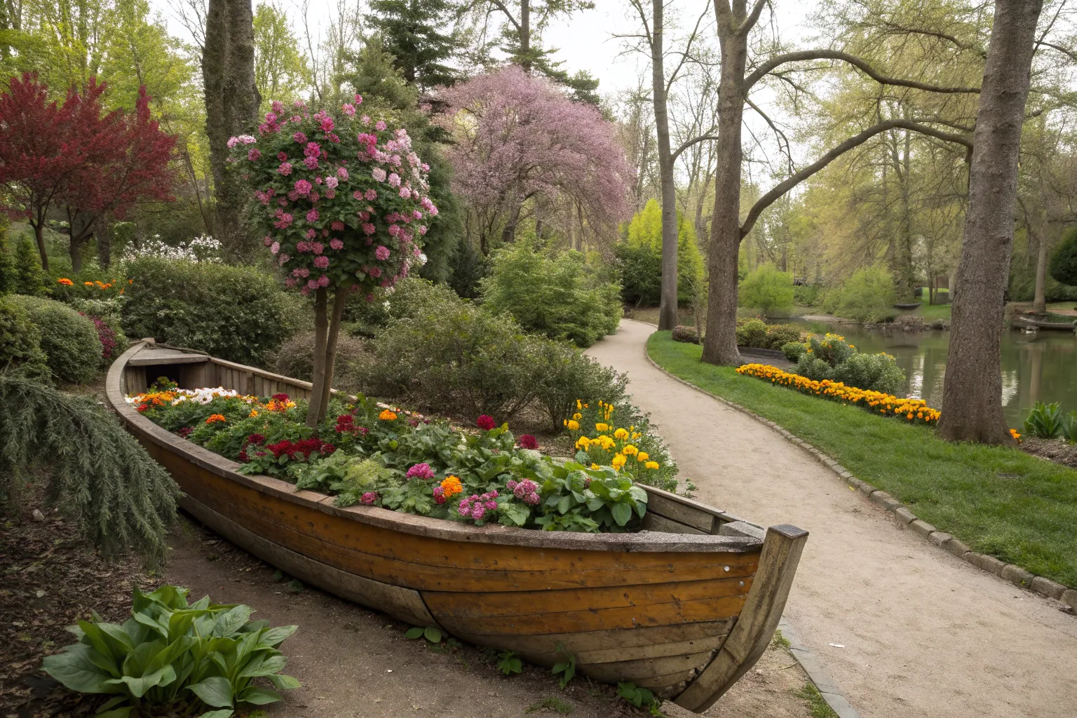 Position a boat planter near a pond to create a serene setting. It’s a personal favorite of mine for adding a tranquil vibe to any garden.