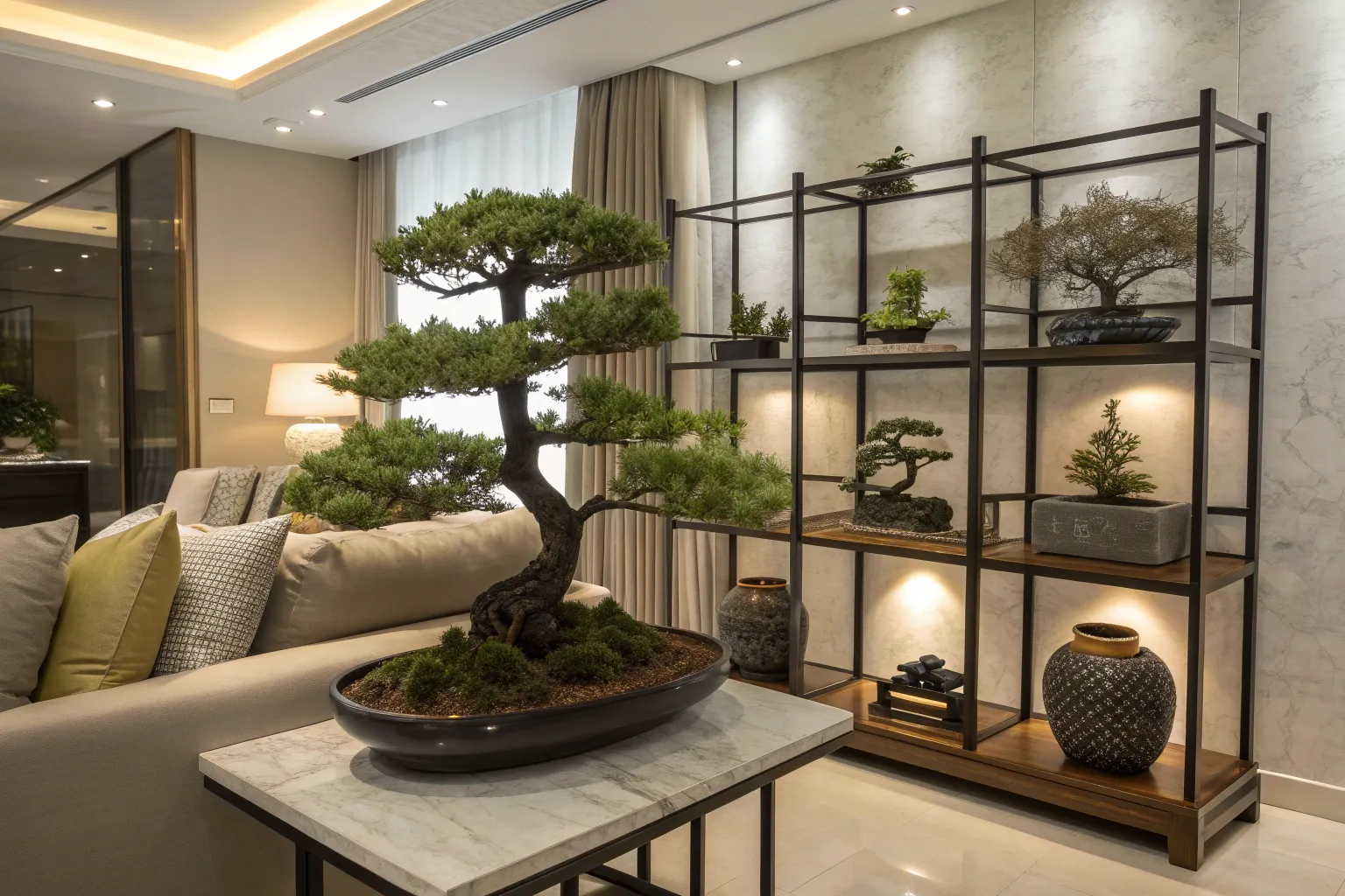 For a modern twist, try floating shelves that seem to defy gravity. These shelves add a contemporary edge and can turn your bonsai into a striking art piece.