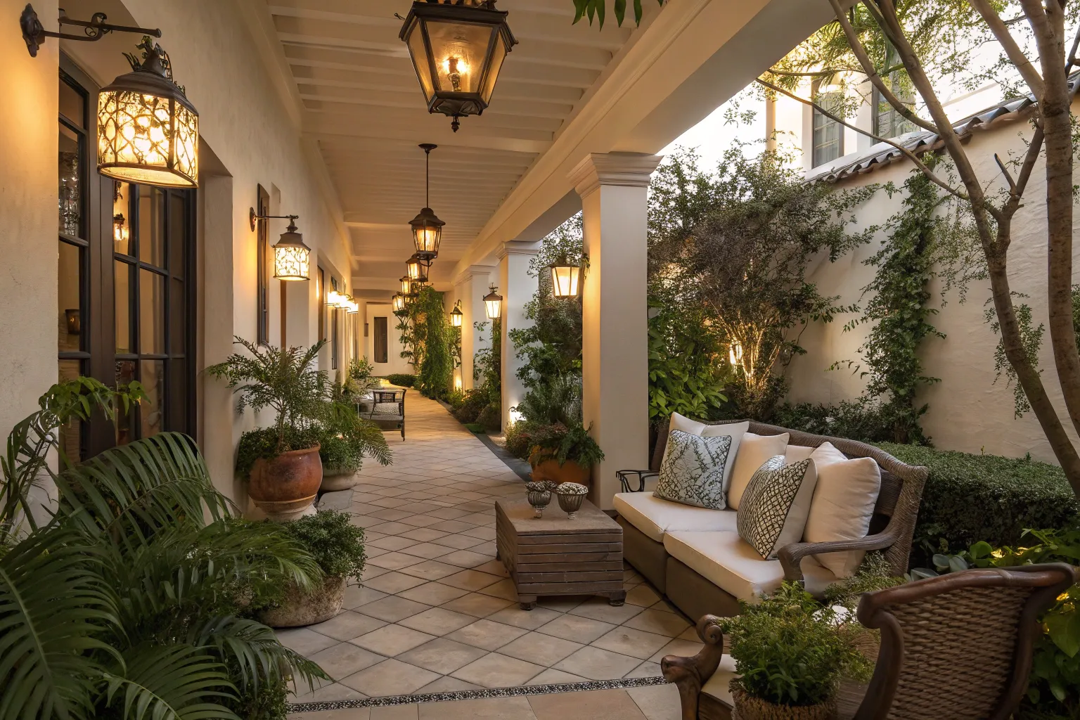 Enhance the natural feel of your breezeway with potted plants and greenery. I love how a mix of ferns and flowering plants can bring a fresh and vibrant touch to any space.