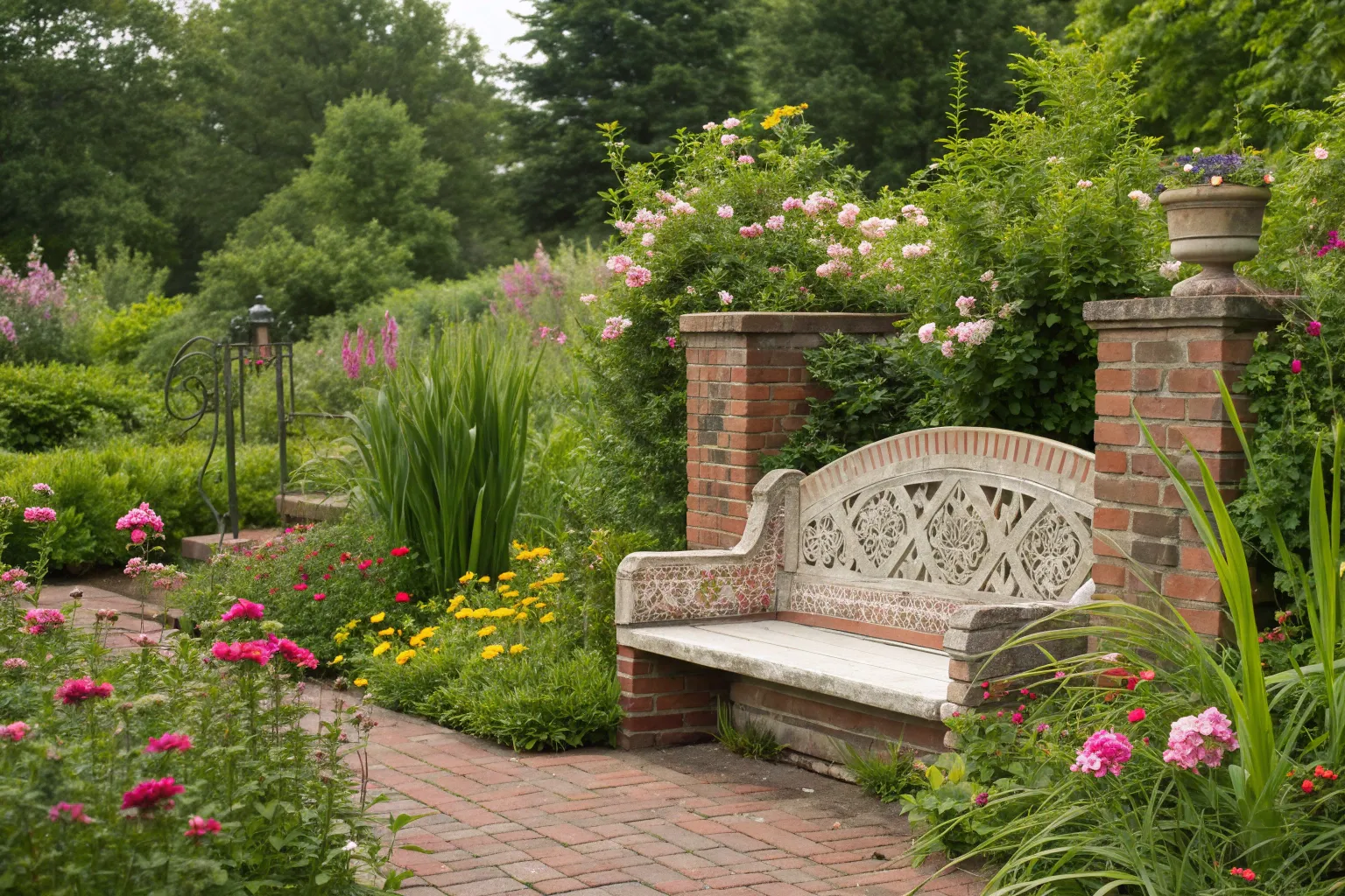 Consider a curved brick bench for a touch of elegance and fluidity. This design is perfect for creating inviting garden nooks.