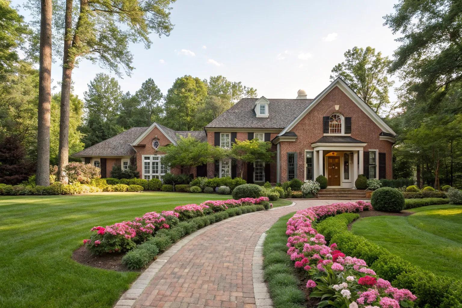 Complementing brick exteriors with lush landscaping creates a harmonious look. Nature’s greens against the brick backdrop always make a striking statement.