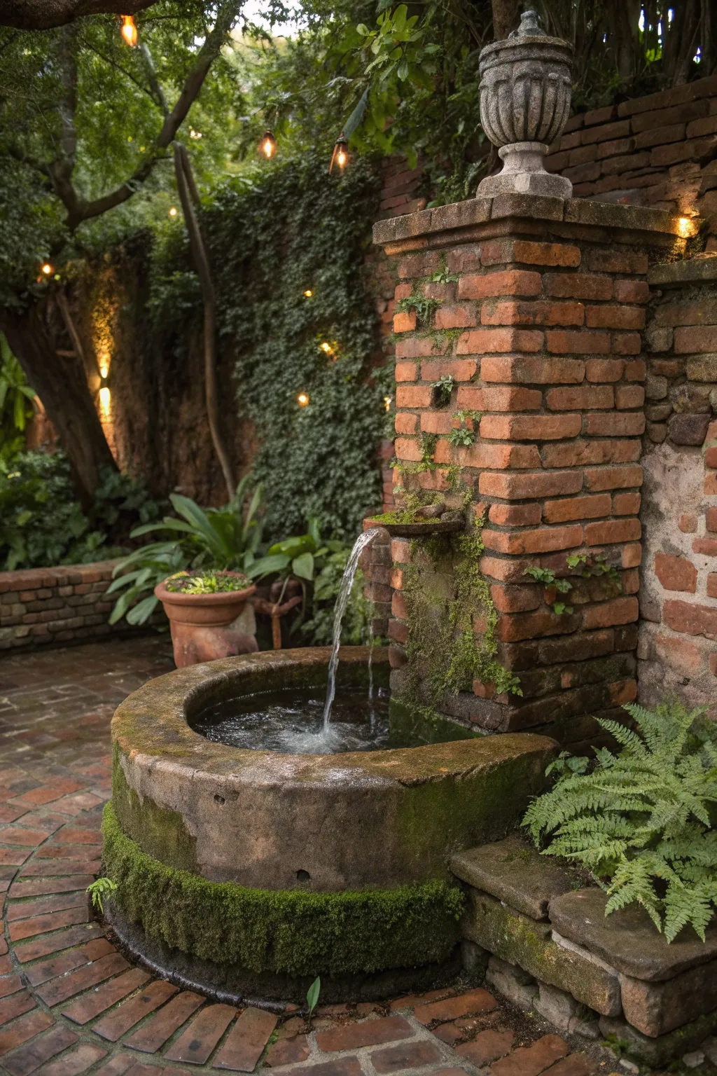 Brick Fountain with Vintage Charm