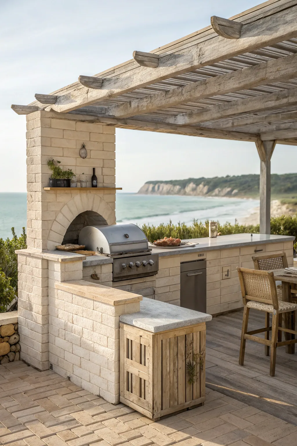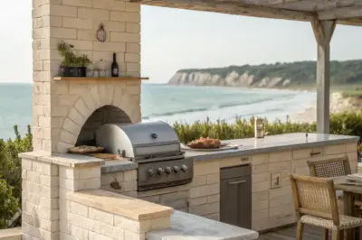 - Weathered Outdoor Dining Set: Complete your outdoor kitchen with this weathered dining set, perfect for a coastal charm.