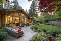 A dry creek bed can add a unique, natural feature that helps with drainage. In my experience, it’s both practical and visually appealing.