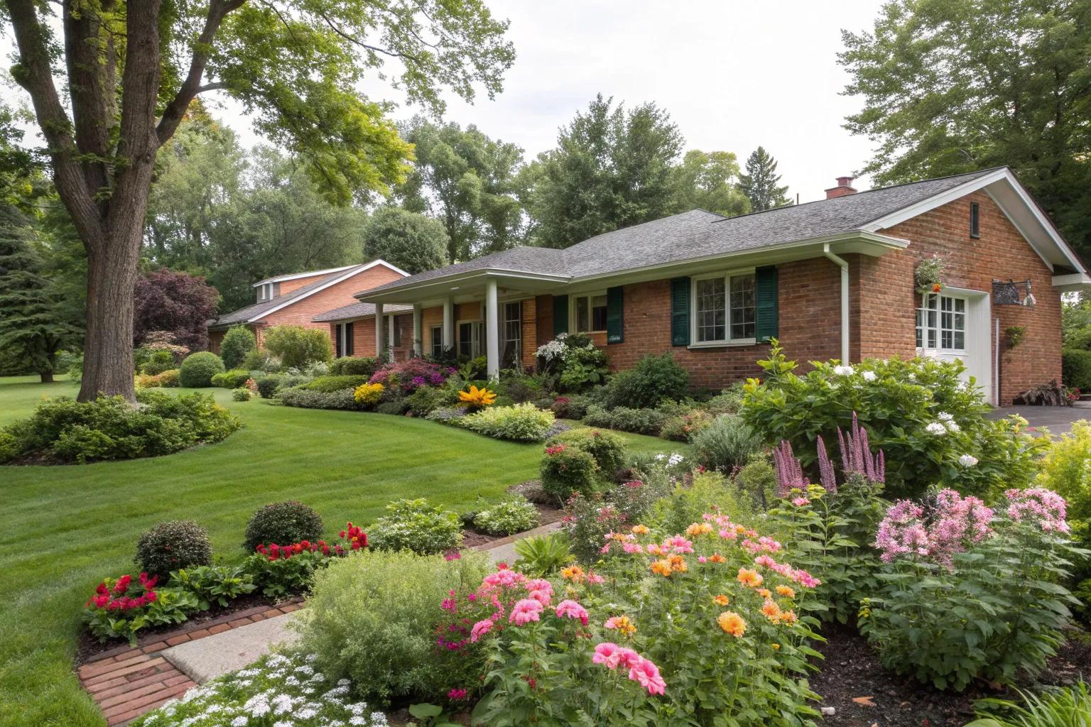 Welcome your guests with an inviting entryway by lining your porch with colorful potted plants. In my own garden, I’ve seen how these can instantly elevate the look of a brick ranch.