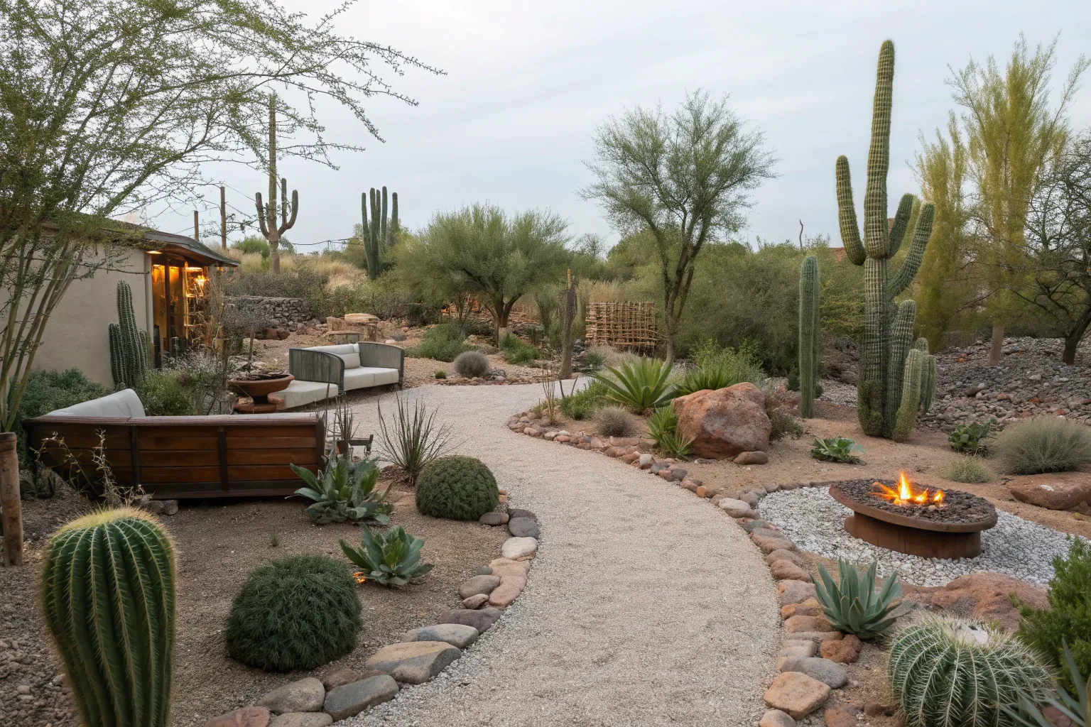 I’ve always found that simple gravel pathways and stone patios can transform a backyard into a functional and stylish space. These materials are budget-friendly and perfect for a desert landscape.
