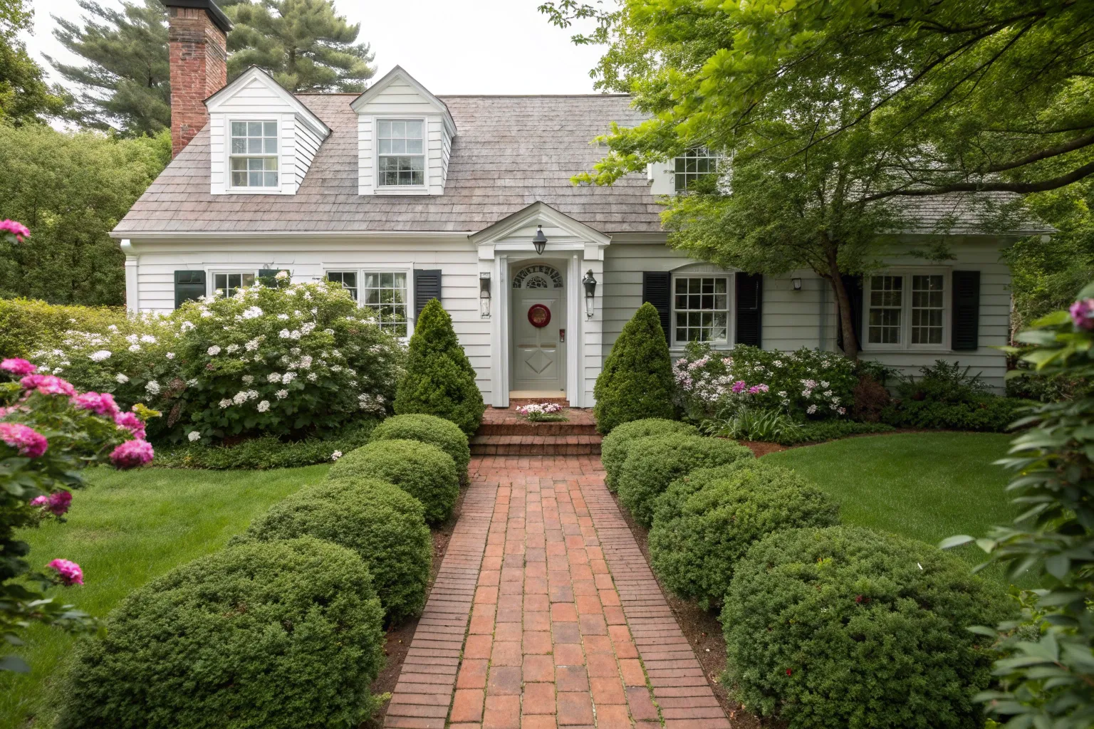 Achieve harmony by flanking your door with matching windows or planters. Symmetry is key to a polished Cape Cod look, as I’ve learned from countless design projects.