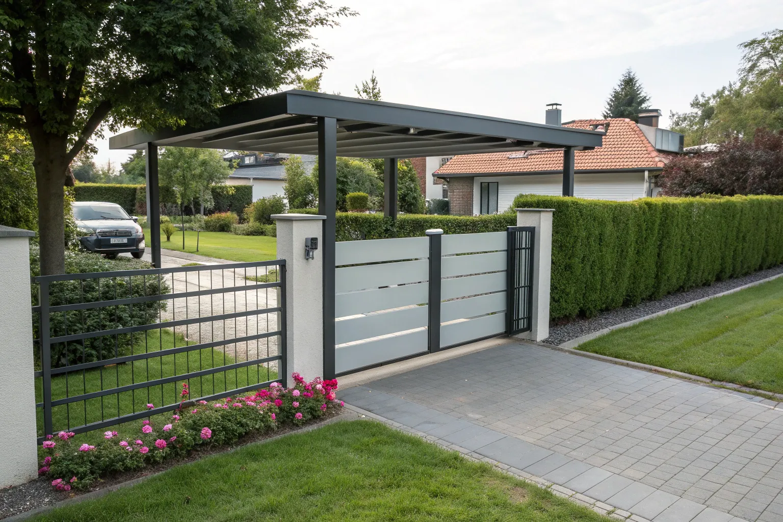 - Steel Driveway Gate: Secure your carport with a durable steel driveway gate, designed for maximum privacy and protection.