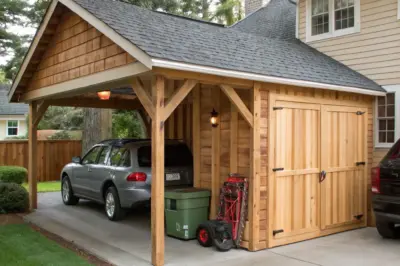 A rustic wood carport brings a warm, natural feel to your home. It’s perfect if you love the charm of wood and want a cozy vibe.